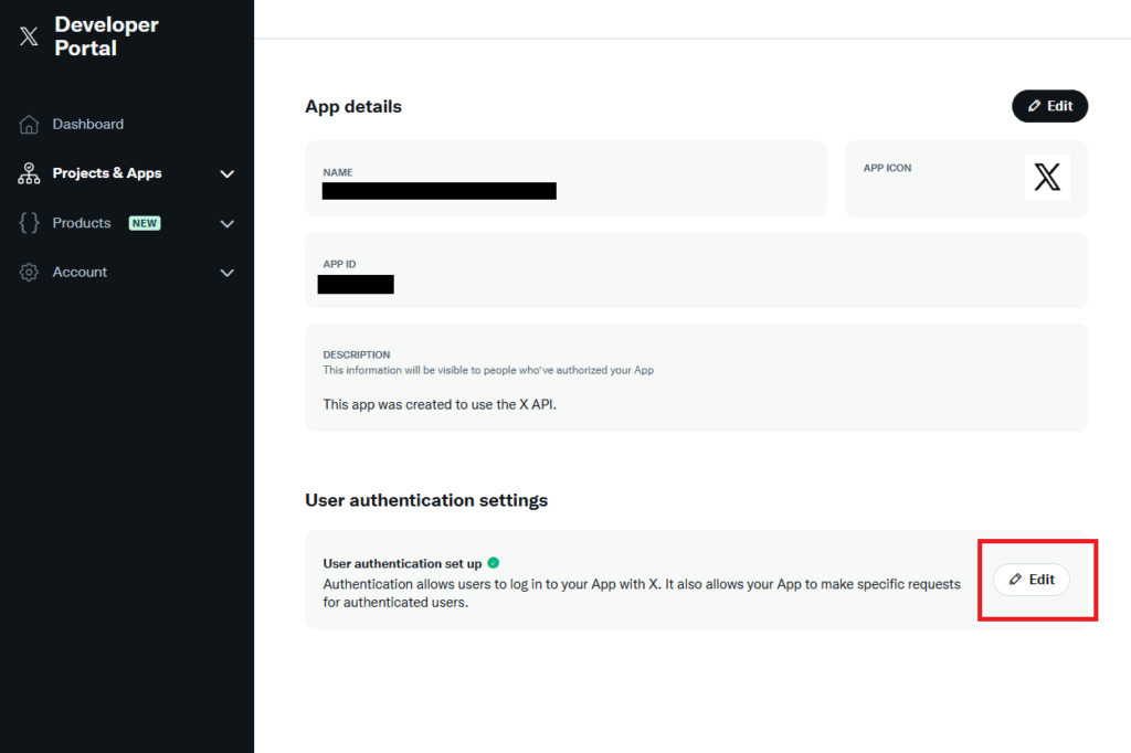 「User Authentication settings」で「Edit(編集)」をクリックします。