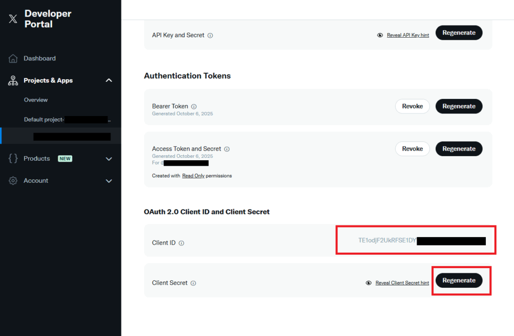また、「Client Secret」を「再生成」して「Client Secret」をコピーしておきます。